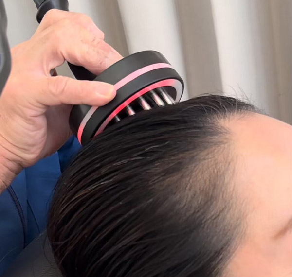 頭皮に最適な特定周波数により、立毛筋、体内組織を刺激し、血流、リンパの流れを促進し、また幹細胞が内在する領域を刺激し発毛を促進します。自律神経にも効果が高いと言われていて、ストレスの多い方にも最適です。